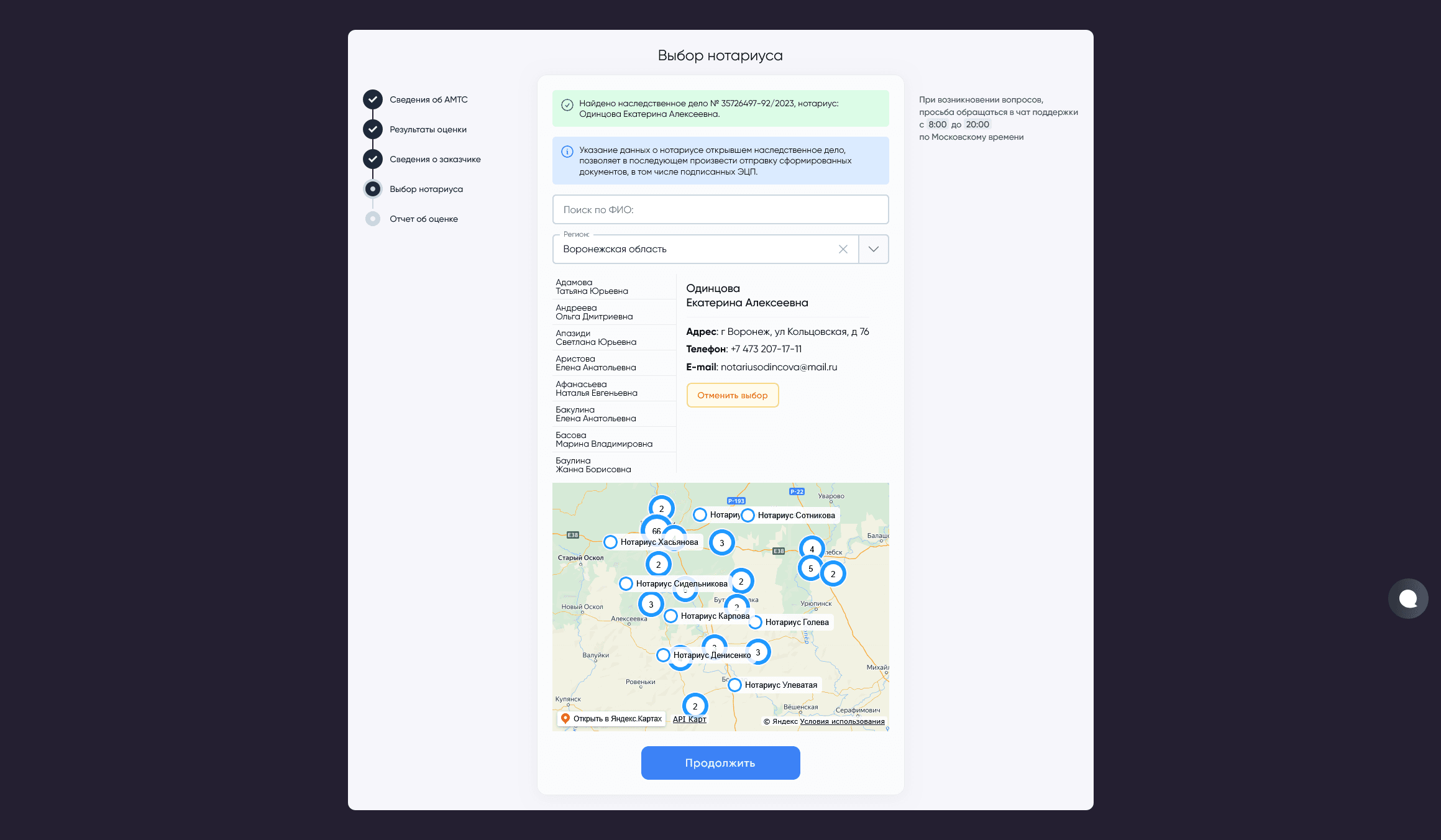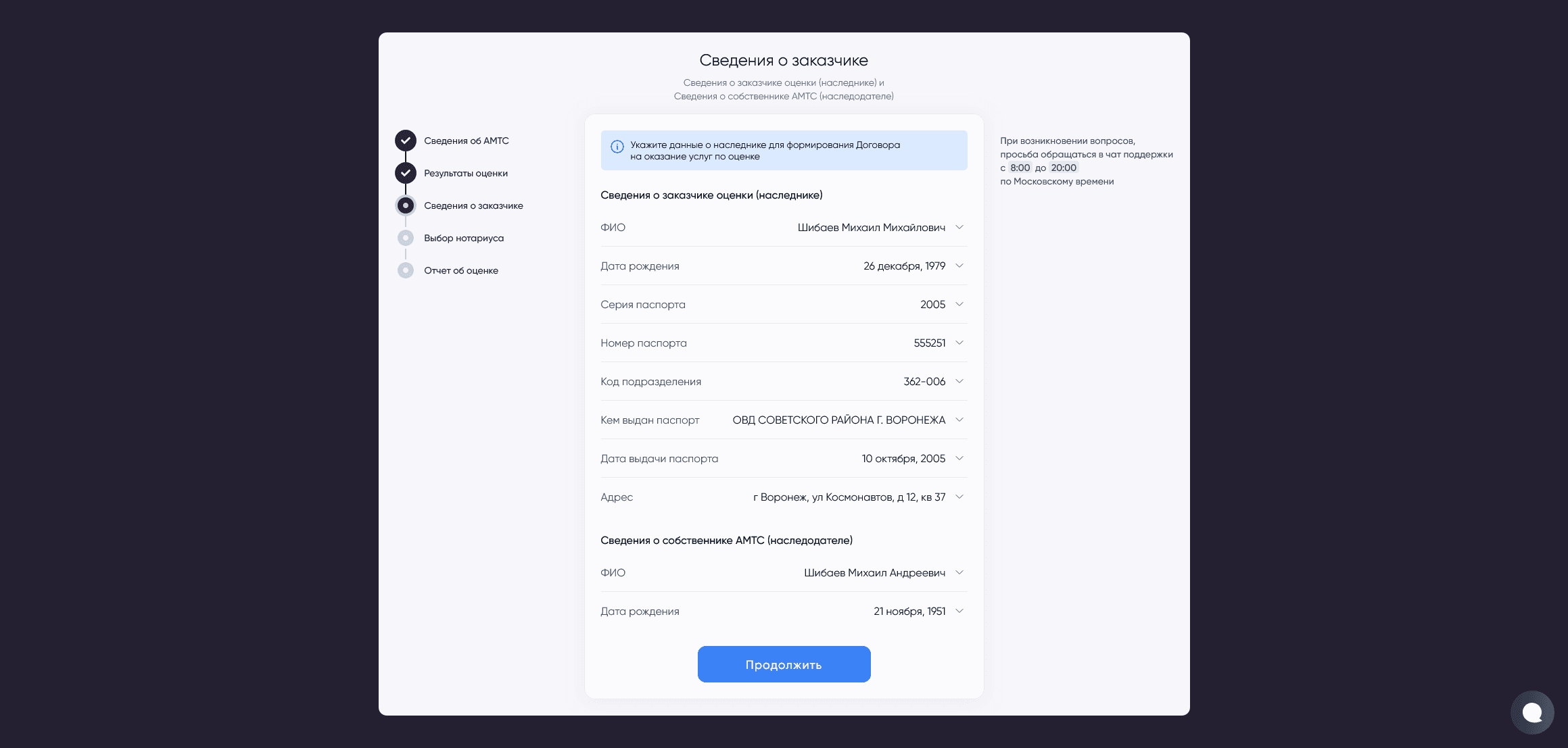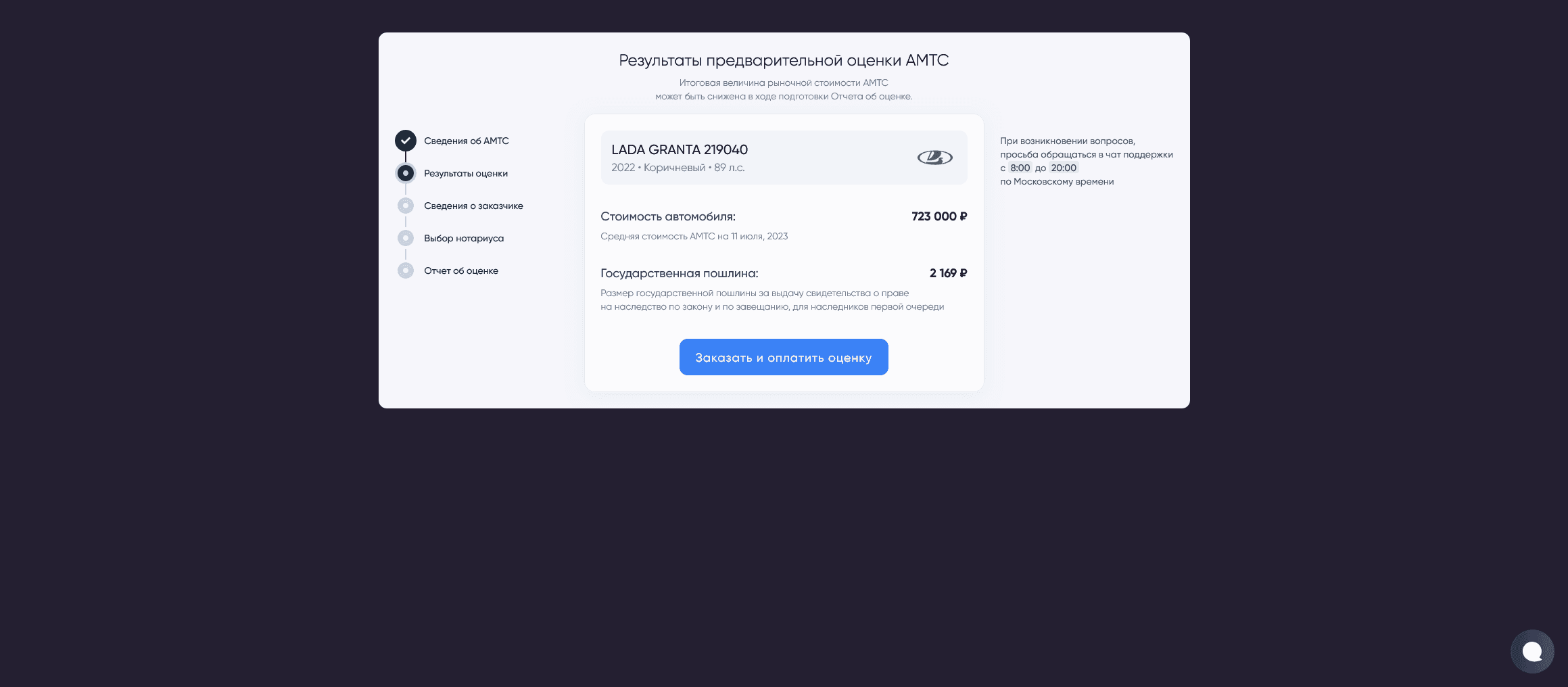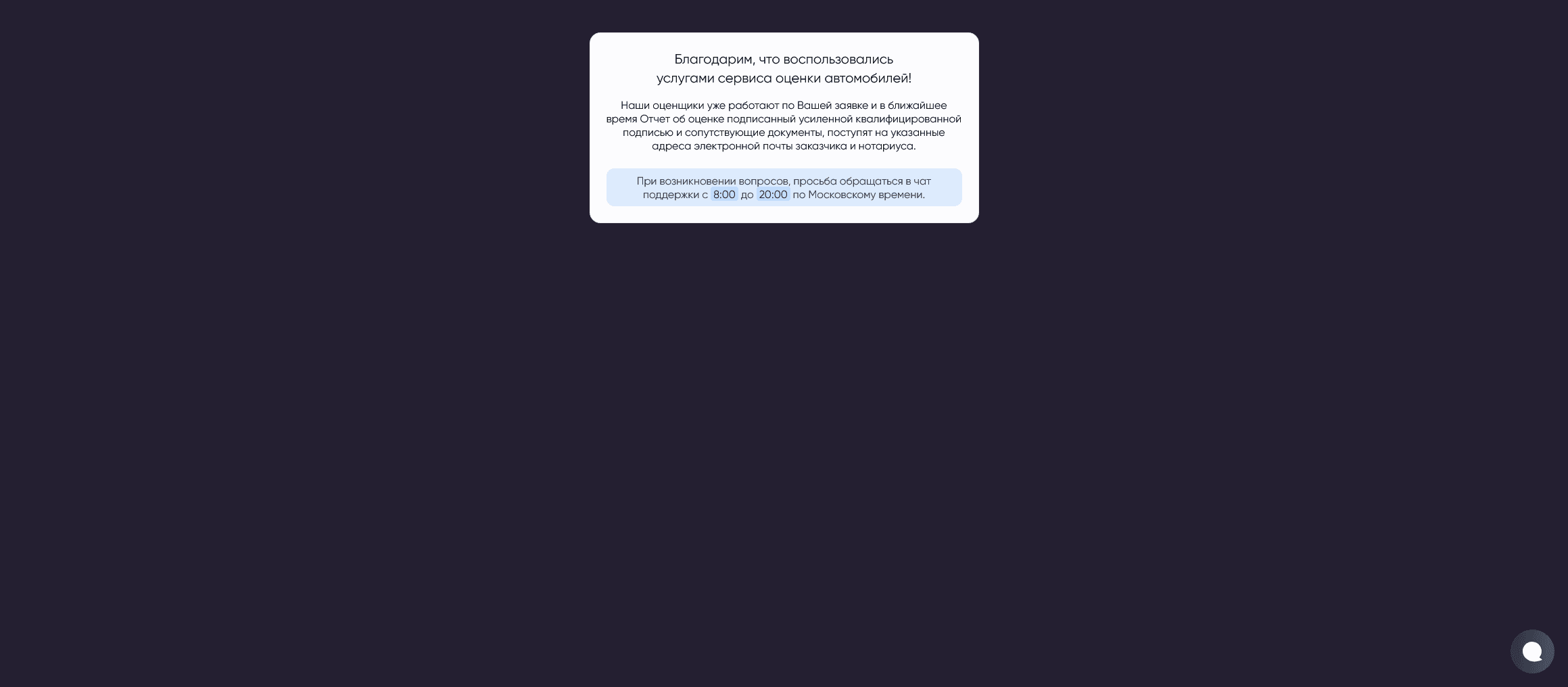 В течение 1 часа, в соответствии с действующим законодательством, подготовим и отправим Отчет об оценке, подписанный усиленной квалифицированной электронной подписью, на указанные адреса электронной почты заказчика и нотариуса
